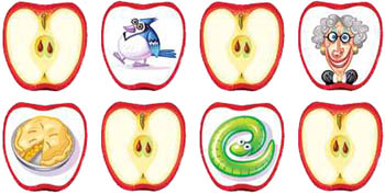When the bird appears at the same time as the worm, count the apple with the worm on it as half an apple.