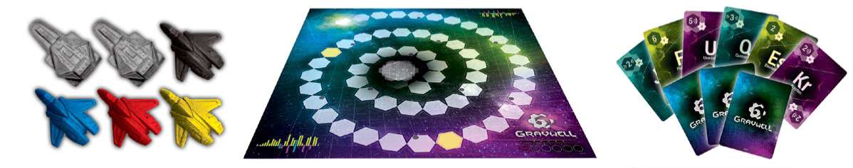 But with careful card play, you can slingshot past these derelict craft and your fellow players. Be the first to escape from the Gravwell!