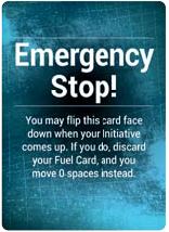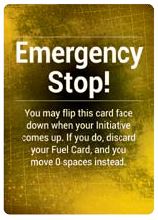 Your Emergency Stop! card starts each Round face up and in front of you. Once per Round, when your Fuel Card initiative comes up during a Movement Phase, instead of resolving the card you played, you may flip your Emergency Stop! card face down instead.