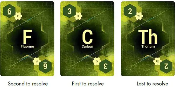 Again, the player whose Fuel Card is nearest to A resolves their card first, and so on all way down to Z. The first letter of the element' s name is the "Initiative" of that card.