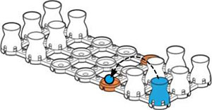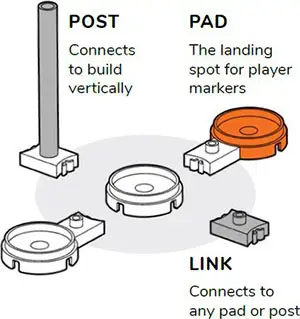 Each player gets three pads + two posts at the beginning of the game and can use them at any time. When using a post, the new pad must be directly above another pad.
