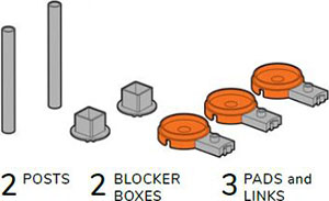 The Gridopolis system is built with three simple pieces that connect together. The pad and link connect horizontally, and the post connects vertically.