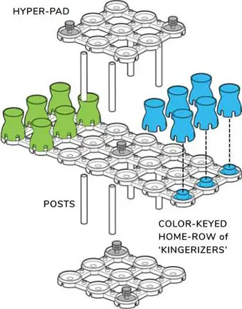 Each player gets two blocker boxes at the beginning of the game and can use them at any time. They can be placed on any open pad (which is not occupied by a kingerizer, hyperpad, or player marker).