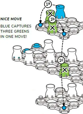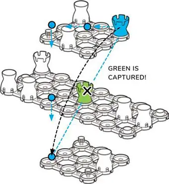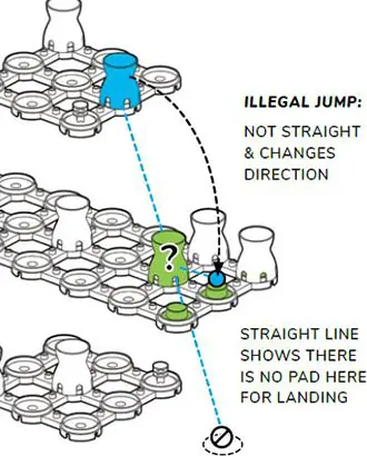 Any capture-jump-move must always be made in a straight line, with no turns or changes in direction. This is tricky with different levels and diagonal angles.