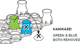 For the kamikaze move (explained later) give your own sacrificed marker, including points, to the opponent you captured. Keep their marker and points.