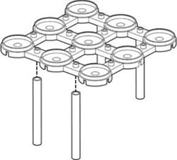 Build three levels and then add four supporting posts for each level. Place hyper-pads as shown, five total.
