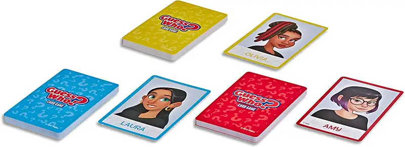 Take turns asking questions until someone thinks they can guess who is on their opponent's Mystery card.