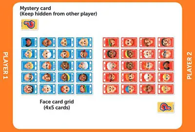 For an extra challenge, both players draw two Mystery cards, and place them side-by-side in their Mystery card slots. Your object is to guess who both of your opponent's Mystery People are!