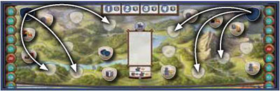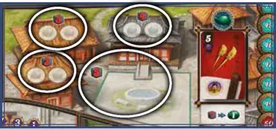 Place the Game Board in the middle of your playing table. Depending on the number of players, place it with the side for a game with 2 or 3 players or the one for 4 or 5 players.