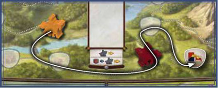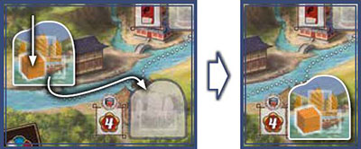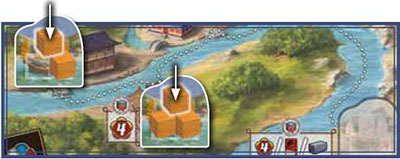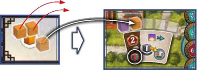 Place 1 Jade on each of the indicated spots and place the remaining ones in a general Jade supply on the square of the Jade action. You'll be able to collect Jade in the game to score Victory Points at the end of the game.