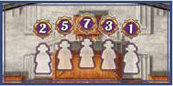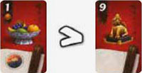 Then the player with the most matching Gift Card values additionally receives 3 VPs and may advance their Envoy 1 step closer to the Palace of Heavenly Purity. In case of a tie, the order of the Intrigue markers will decide.