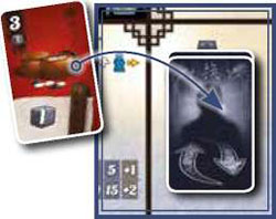 Roll the 3 dice and place them on the indicated spaces. These determine which Gift Cards will deliver you extra Servants and even Victory Points at the end of each round.