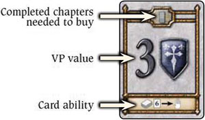 Discard completed chapters (see below) in any order from your guildhall to buy one VP card from the center row.