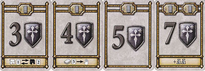 Place the VP card into your action area face up. Some VP cards have abilities that take place immediately when they are bought. As with abilities on profession cards, you may choose not to use them.