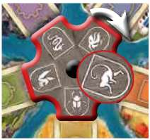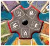 After each player has drawn from the deck their icon is pointing at, rotate the wheel clockwise so that each player icon is pointing at the next clockwise deck.