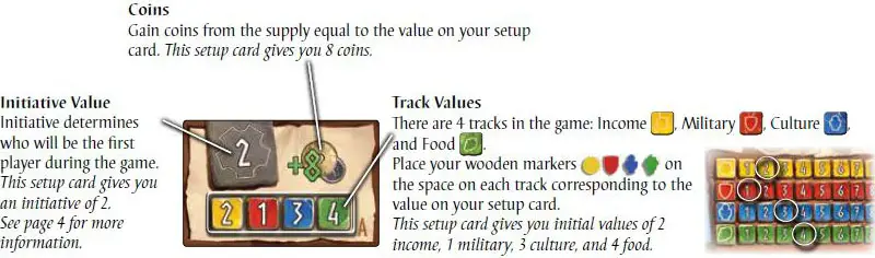 During epoch I, the player with the lowest-value initiative on their setup card is the first player. During epoch II, the player with the second-lowest initiative on their setup card is the first player. During epoch III, the player with the third- lowest initiative on their setup card is the first player.