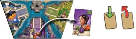 Example: You choose the top card of the purple discard pile. You must either buy or sell this card.