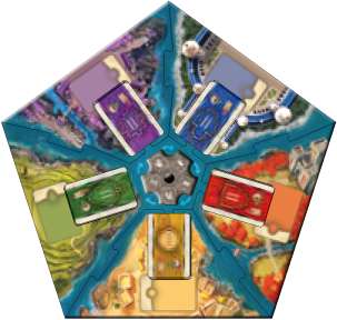 1 Connect the 5 segments of the board together in any order and place the board in the middle of the table.