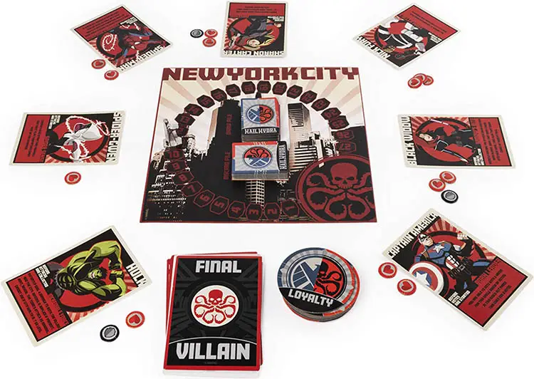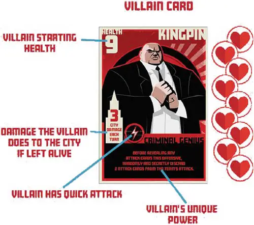 You will be defeating Villains as a team of Heroes. If a Villain survives a round, it will inflict damage on New York City. It's up to your team to defeat them quickly and strategically! But beware, there may be HYDRA agents sabotaging your efforts...