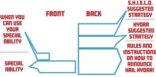 On the back of each Hero Card are suggested strategies for when to use your ability if you are S.H.I.E.L.D. or HYDRA. Also located on the back are instructions for announcing HAIL HYDRA!, explained later in the rules.