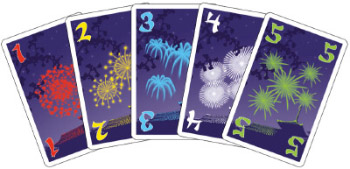 - 50 fireworks cards in five colors (red, yellow, green, blue, white)