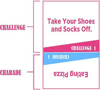Each Challenge Card has 2 items on it: a Challenge (used in Relay and Battle gameplay) and a Charade.