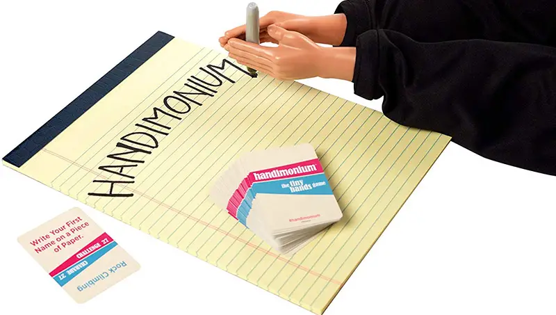 Once the challenge is successfully completed, Player #1 gives the tiny hands to Player #2 so they may begin the second challenge and so on as you compete to finish the tasks.