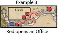 If no empty spaces are available in a city, no Office may be opened without the use of the Extra Office Bonus Marker.