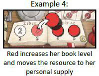 Rearrange a number of your resourcesthat are on trade routes up to that indicated by the "Book of Lore" track on your player mat. You can swap the positions of your resources but cannot move Offices between cities or resources into cities.