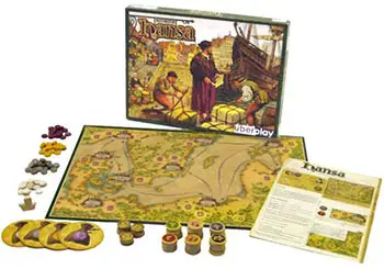 Set up networks of market booths within the cities, which allows your goods to be re-sold at the most advantageous time and increases your power and prestige. At the end of the game, the player with the most establishments and the greatest profits, is the winner.
