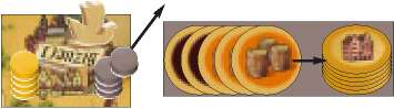 The spent Goods Marker is then removed from the game. The player places as many Market Booths into the City as there are barrels depicted on the Goods Marker.