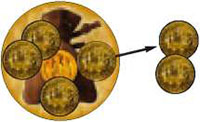 Note: To permit easier overview during the game, a player's Market Booths should be sucked on top of one another (Example 6).