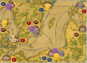 Hansa gives players many different movement possibilities. If a player should decide, midway through a turn, that he'd have rather performed a different action earlier, then it can be difficult for him to retrace his steps. Therefore, players should carefully plan their turns first and then carry the actions out.