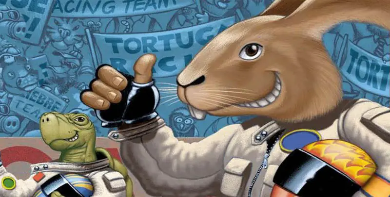 Each player takes 1 racing marker, 3 lettuce cards, and carrot cards worth 65 (2 "5", 1 each of "10", "15", and "30").