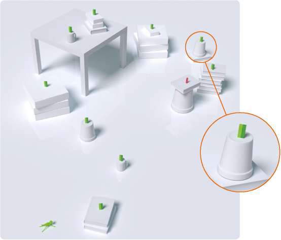 Look around the room for suitable places to set up the blades of grass for your grasshopper to knock over. Set up two blades of grass in a row (a light green one and a dark green one) at each spot you choose.