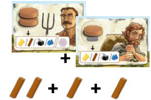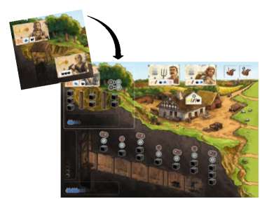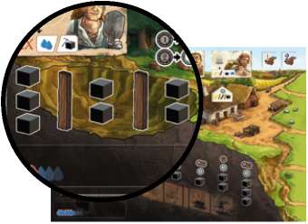 Each player can store one single unit of food, wood or coal in the farm area on his player board. Stored resources can be used later in the game.