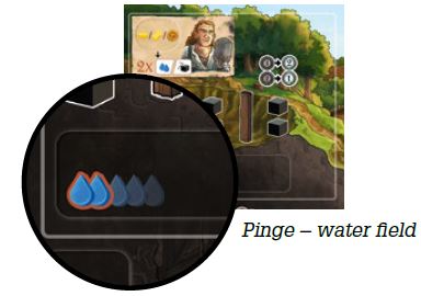 Until completion of the Pinge, pit water is placed on the water field in the pinge area on the player board.