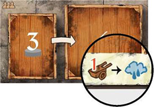 If an empty wood symbol in the tunnel is covered with wood, the player can Put wood excavate the coal cubes to the right of the placed wood until the next empty wood into the symbol. tunnel -