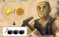 The Coal-digger only works if he is paid. He performs 2 actions.