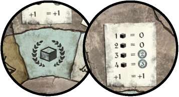 Players lose victory points for the number of debt markers a player owns: 1 debt chit - minus 1 victory point