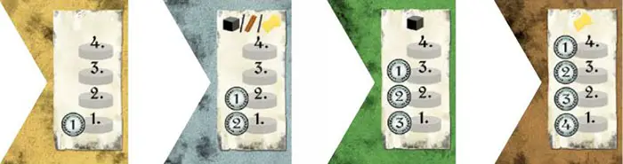 - Level 4: 1st player: 4 victory points, 2nd player: 3 victory points, 3rd player: 2 victory point, 4th player: 1 victory point