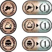 A player receives 2 victory points when he excavates all 7 coal cubes during the first year in the game. If this goal is fulfilled in the second year 1 point is received.