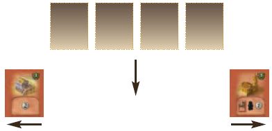 Very important: In principle, buildings can only be purchased if they sit on the far left or the far right of the two rows of cards - this makes exactly 4 available cards at all times. During the course of the game, the cards are essentially purchased "from the outside to the inside".