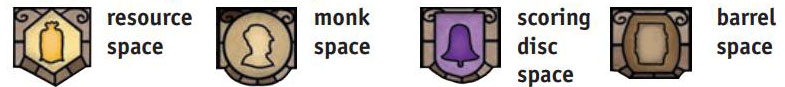 - You may never move to any space whose action you are not able to perform. This means you may not move to a resource or monk space where there isn't any tile, nor may you move to a scoring disc space where there isn't any scoring disc. Similarly, you may not move to a barrel space if you have not achieved any barrel's goal.