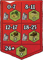 Next, take from the reserve the shed tile shown in the reward table and place it on the enclosed shed spot. Each shed tile activates a number of adjacent tiles immediately. Each resource and monk tile activated this way grants its usual activation reward: