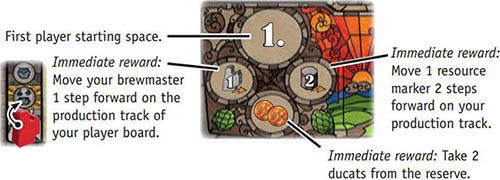 Move your brewmaster as many steps forward on your production track as is indicated in the reward table (0 to 6 steps).