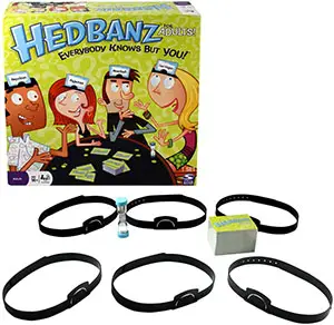 Each player takes a Headband and adjusts it around their head. Make sure the Hedbanz logo is above your eyebrows and centered on your forehead.