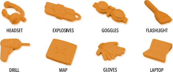 Place the 8 tools around the safe, so that all players can easily reach them.