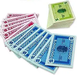The Money Man handles all of the money during the game, and should place the money near himself/herself in 3 separate piles: $1M, $3M, $5M.