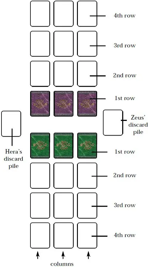 The opponent then moves the cards that were behind the Hera or Zeus figure forward in the column to fill the empty space.